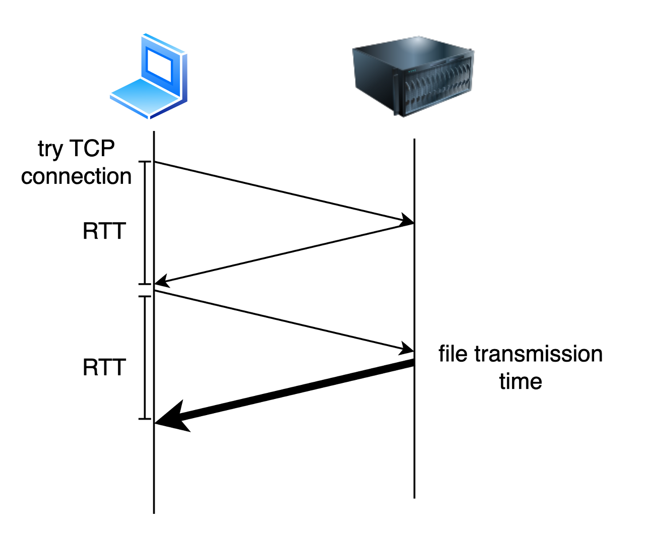 (non-) persistent 모두 요청을 위한 RTT가 한 번 필요하고, 이후 object를 전달받는데 RTT + file transmission time이 소요된다.